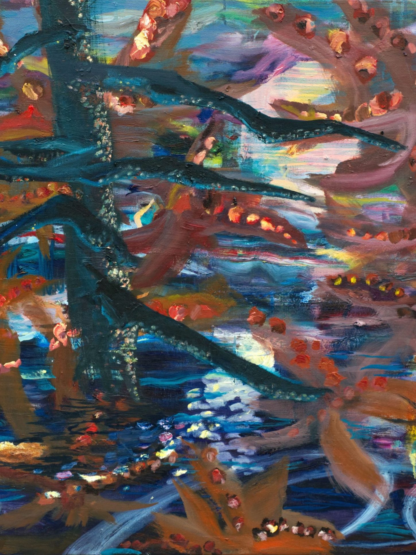 In het proces is er geen bepaling over onder en boven, links of rechts. Het is vechten met de materie om een andere laag te bereiken. Heen en weer tussen versobering en het vuur van kleuren.