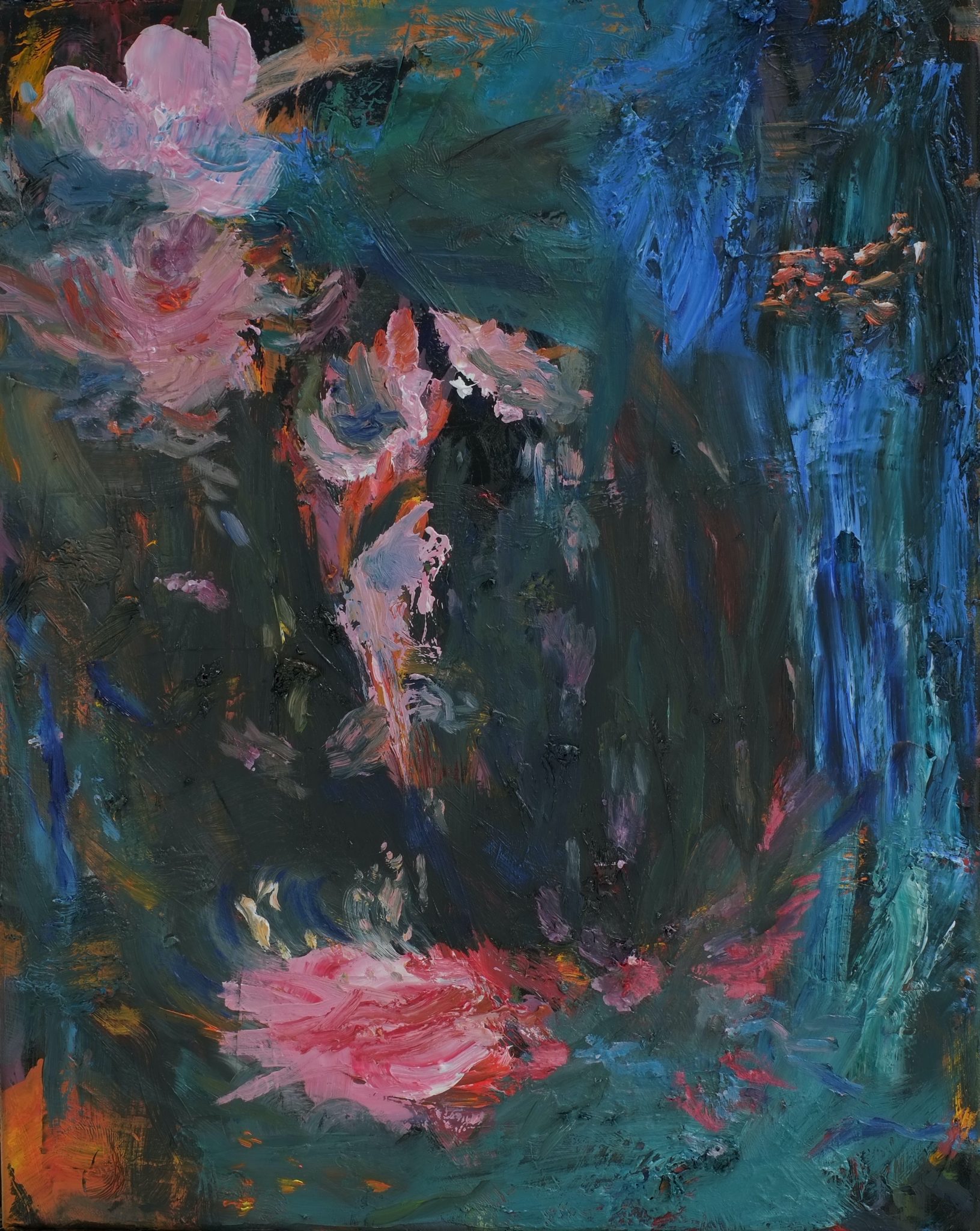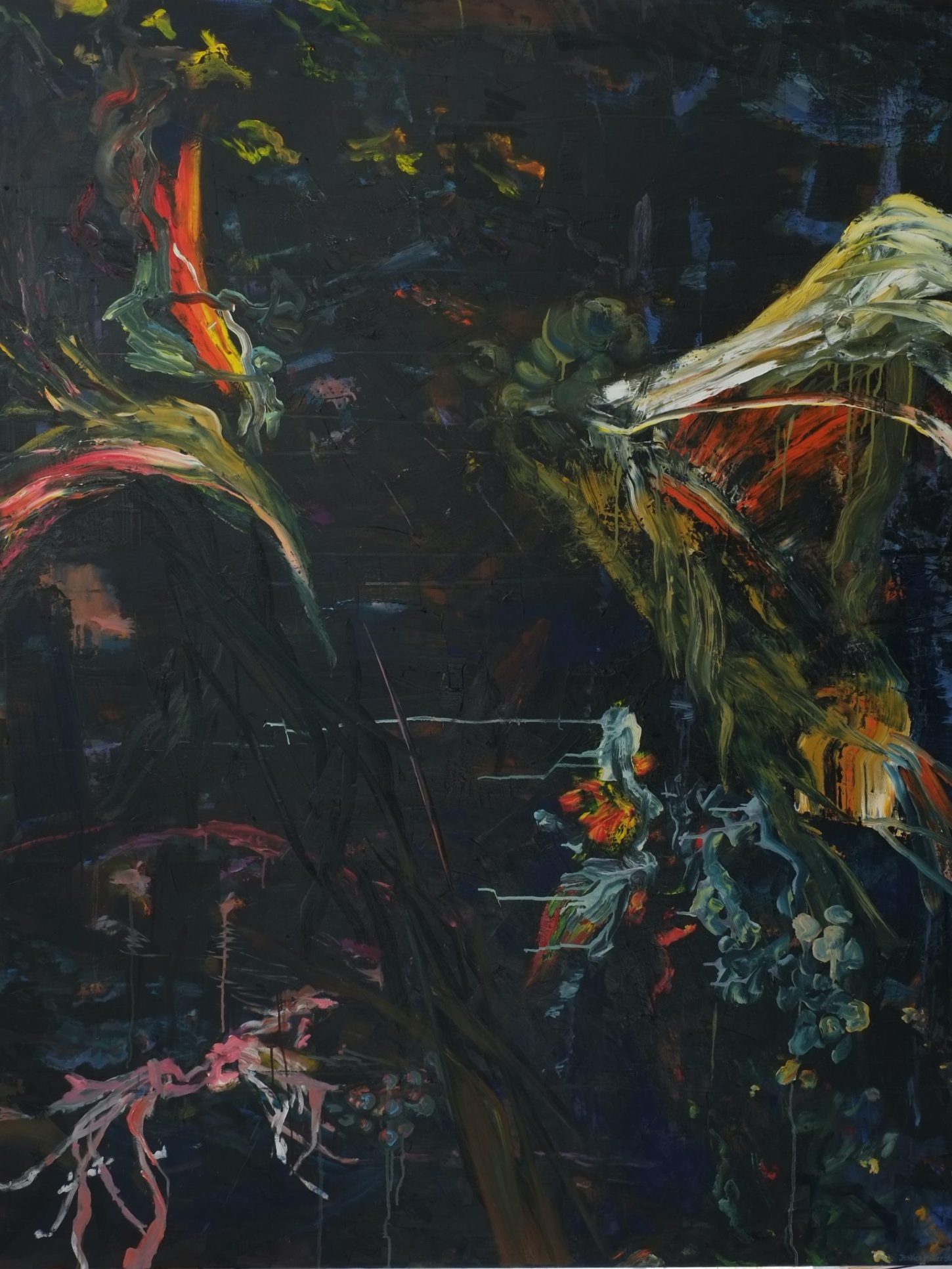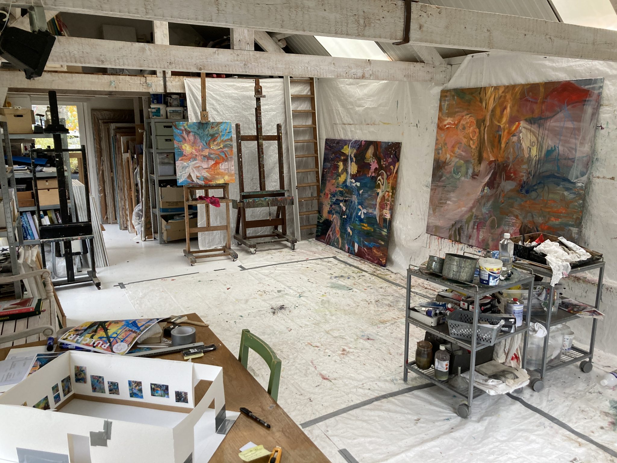 In het proces is er geen bepaling over onder en boven, links of rechts. Het is vechten met de materie om een andere laag te bereiken. Heen en weer tussen versobering en het vuur van kleuren.