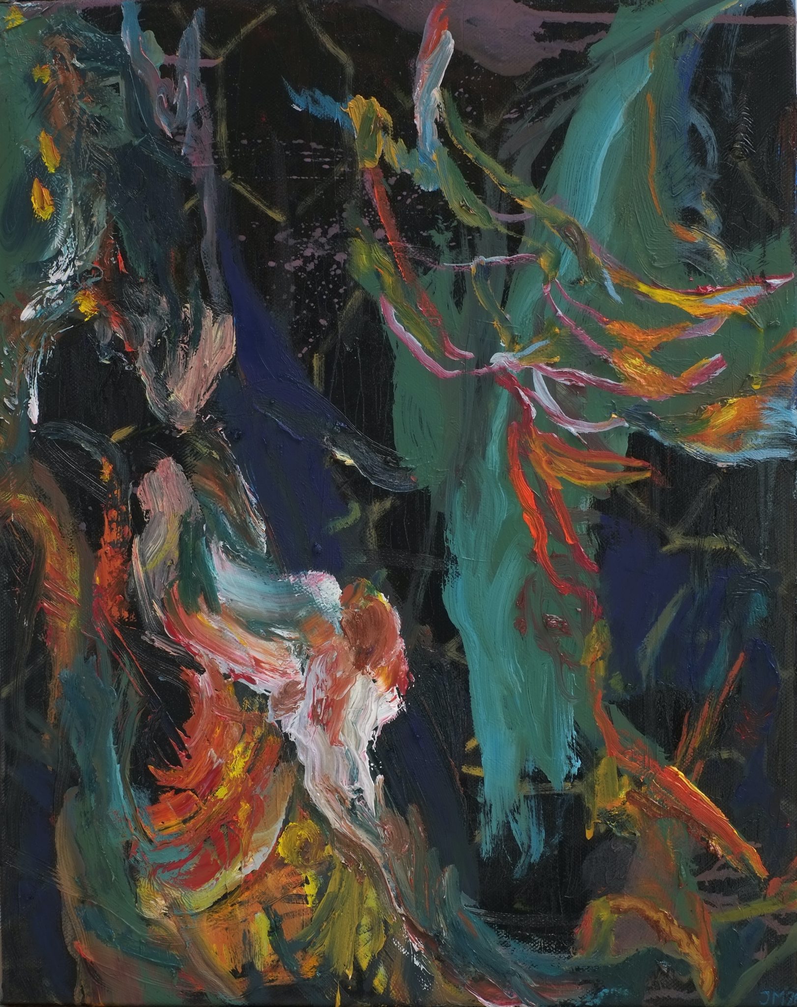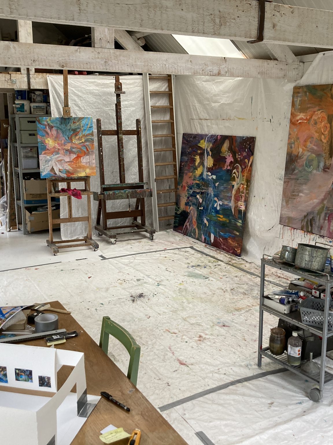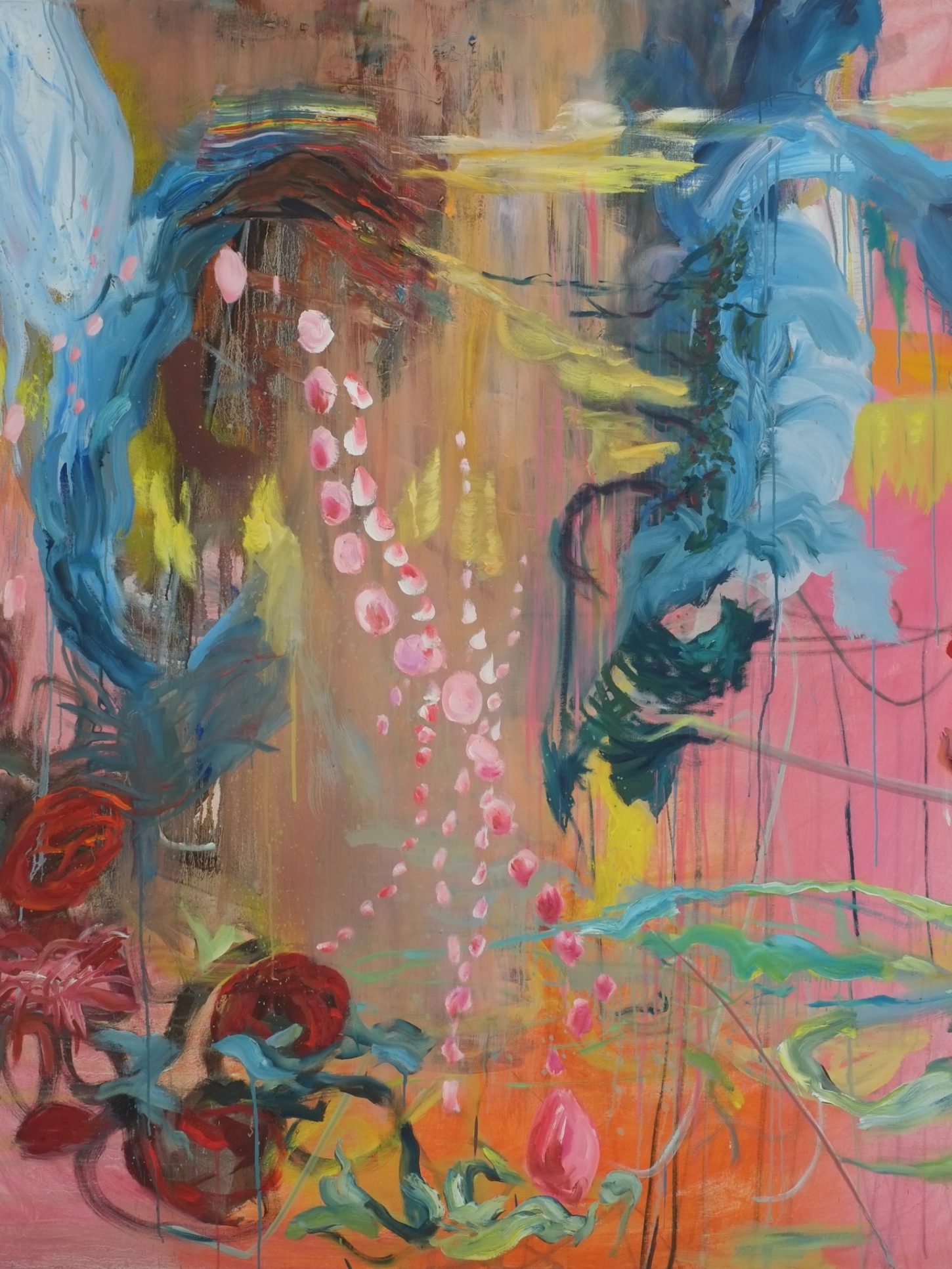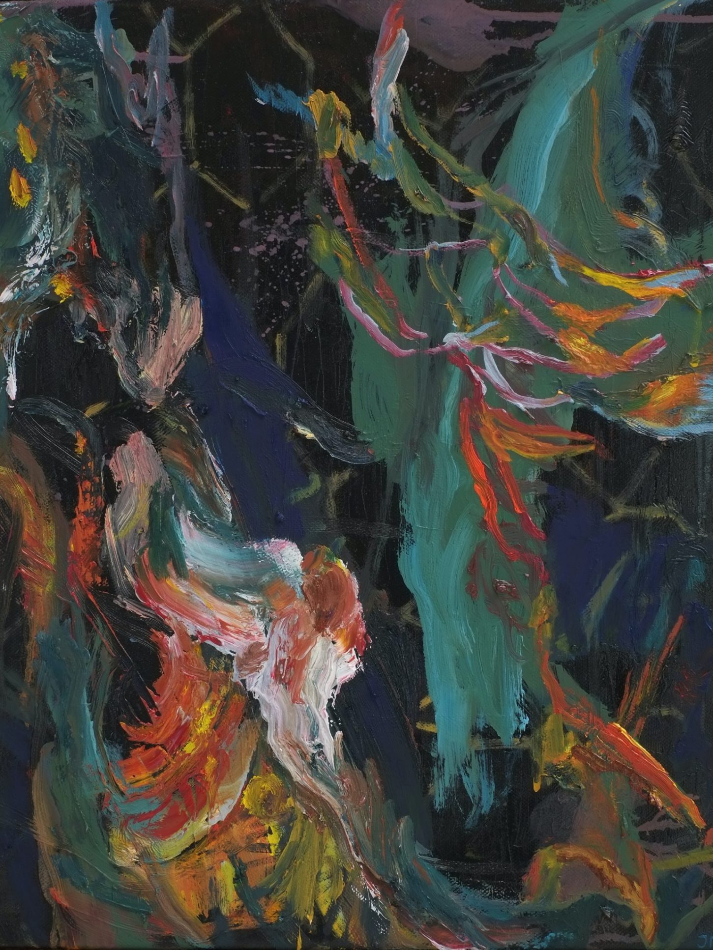 In het proces is er geen bepaling over onder en boven, links of rechts. Het is vechten met de materie om een andere laag te bereiken. Heen en weer tussen versobering en het vuur van kleuren.